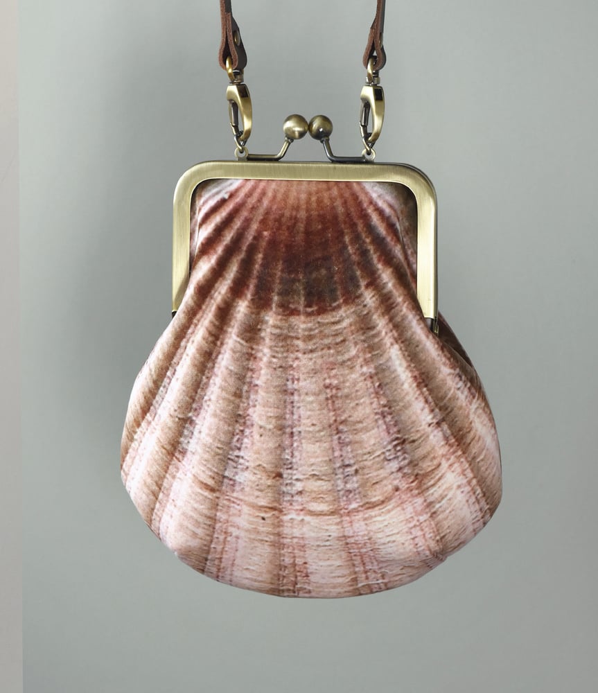 >> About this bag. Inspired by seasonal natural landscapes and flora, this scallop shell was beachcombed from Big Sand beach after a winter storm. Fabric printed in the UK and every piece cut, constructed and handmade by Rowena in her coastal studio in NW Scotland.