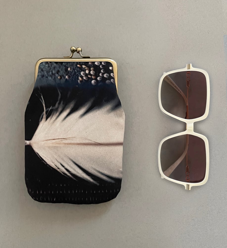 >> About this purse. Inspired by seasonal natural landscapes, flora and fauna, this feather was beachcombed on a highland beach. Fabric printed in the UK and every piece cut, constructed and handmade by Rowena in her coastal studio in NW Scotland.